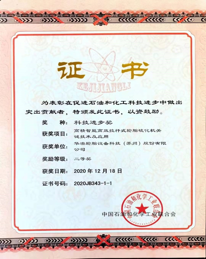 华澳公司荣获2020年度石油和化学工业联合会“科技进步奖” 12 20, 20200Comments祝贺华澳公司荣获2020年度中国石油和化学工业联合会“科技进步二等奖”。2020年11月25日,经中国石油和化学工业联合会组织有关专家评审,评出2020年度中国石油和化学工业联合会科学技术奖,华澳公司和苏州大学共同申报的“高精智能高效拉杆式轮胎硫化机关键技···Read More